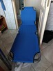 Składane, niebieskie łóżko polowe w dobrym stanie. Może być wykorzystywane jako dodatkowe miejsce do spania lub jako ...