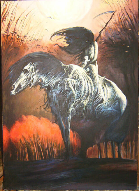 Jesienna Wiedźma Z cyklu „31 październik” Technika: rysunek piórkiem, czarna i biała farba akrylowa , lawowany ...
